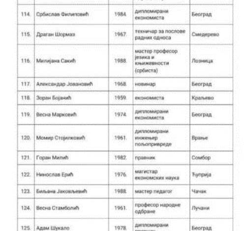 Šukalo se nalazi na 125. mjestu na listi, što će mu, s obzirom na bojkot izbora velikog dijela opozicije u Srbiji, najvjerovatnije donijeti poslanički mandat. Izbori u Srbiji će se održati 26. aprila 2020. godine, piše Srpska Cafe.