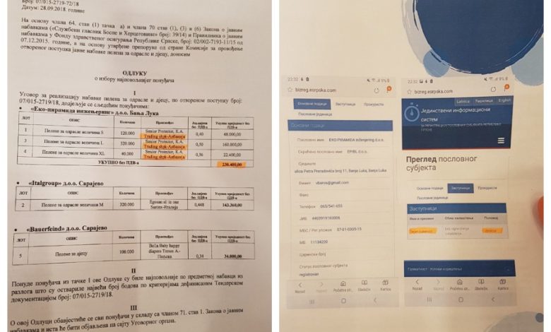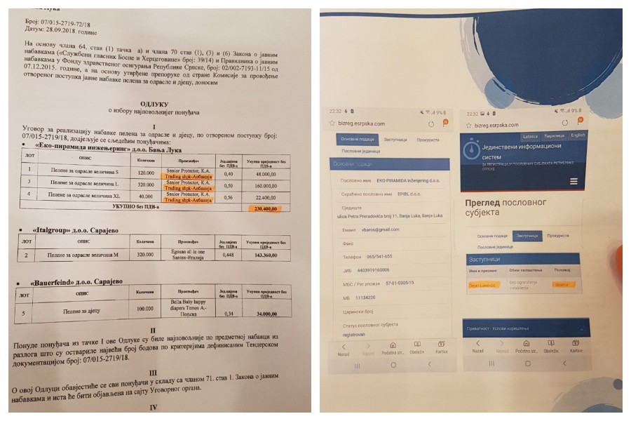 On je Srpskojinfo pokazao odluku o izboru najpovoljnijeg ponuđača za nabavku pelena, na kojoj je navedeno ime preduzeća “Eko piramida”.