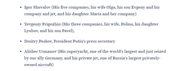 Danas, na meti SAD su u saradnji sa saveznicima i partnerima, pripadnici ruske elite i članovi njihovih porodica koji podržavaju predsjednika Putina uprkos brutalnoj invaziji na Ukrajinu – saopštila je Bijela kuća.
