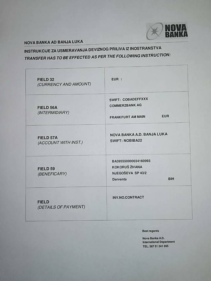 Svi oni koji su u prilici liječenje mogu pomoći uplatom na žiro račun broj 555 0088 15 0668 872, otvoren u Novoj banci, na ime Živana Kokoruš.