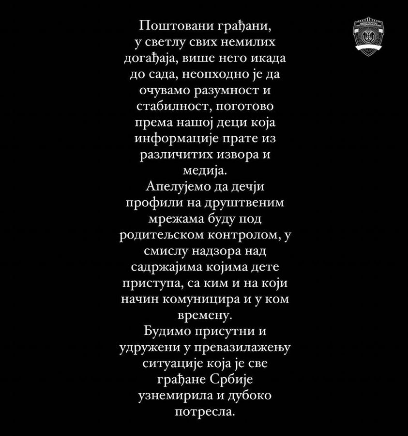 – Poštovani građani, u svetlu svih nemilih događaja, više nego ikada do sada, neophodno je da očuvamo razumnost i stabilnost, pogotovo prema našoj deci koja informacije prate iz različitih izvora i medija – navodi se u saopštenju MUP-a.