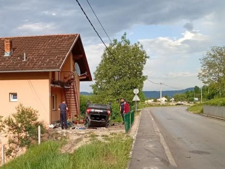 Automobil „pežo“ izletio je danas sa puta koji povezuje banjalučka naselja Petrićevac i Motike i završio na krovu.