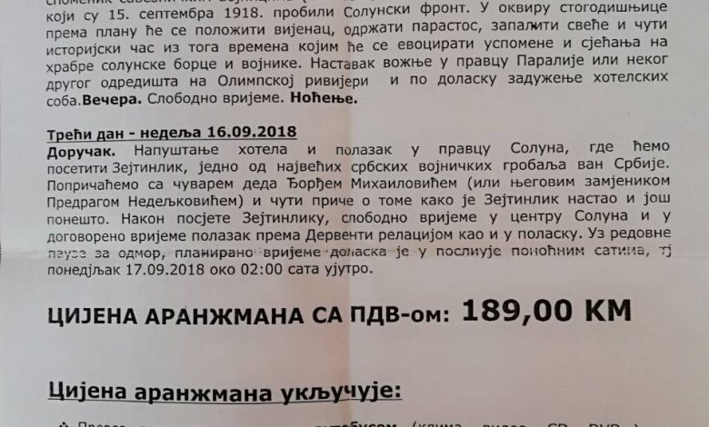 Opštinska boračka organizacija Dervente organizuje posjetu Solunu povodom stogodišnjice proboja Solunskog fronta.