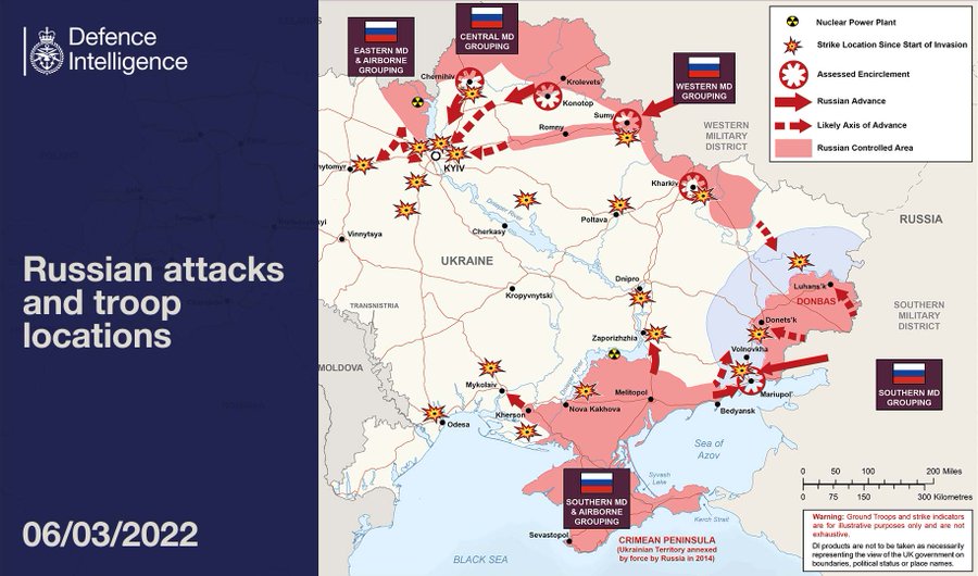 Ministarstvo odbrane Velike Britanije na Twitteru je objavilo novu mapu napada ruske vojske na Ukrajinu. "Nastavlja se ničime isprovocirana i ilegalna invazija Ukrajine", stoji u objavi Ministarstva.