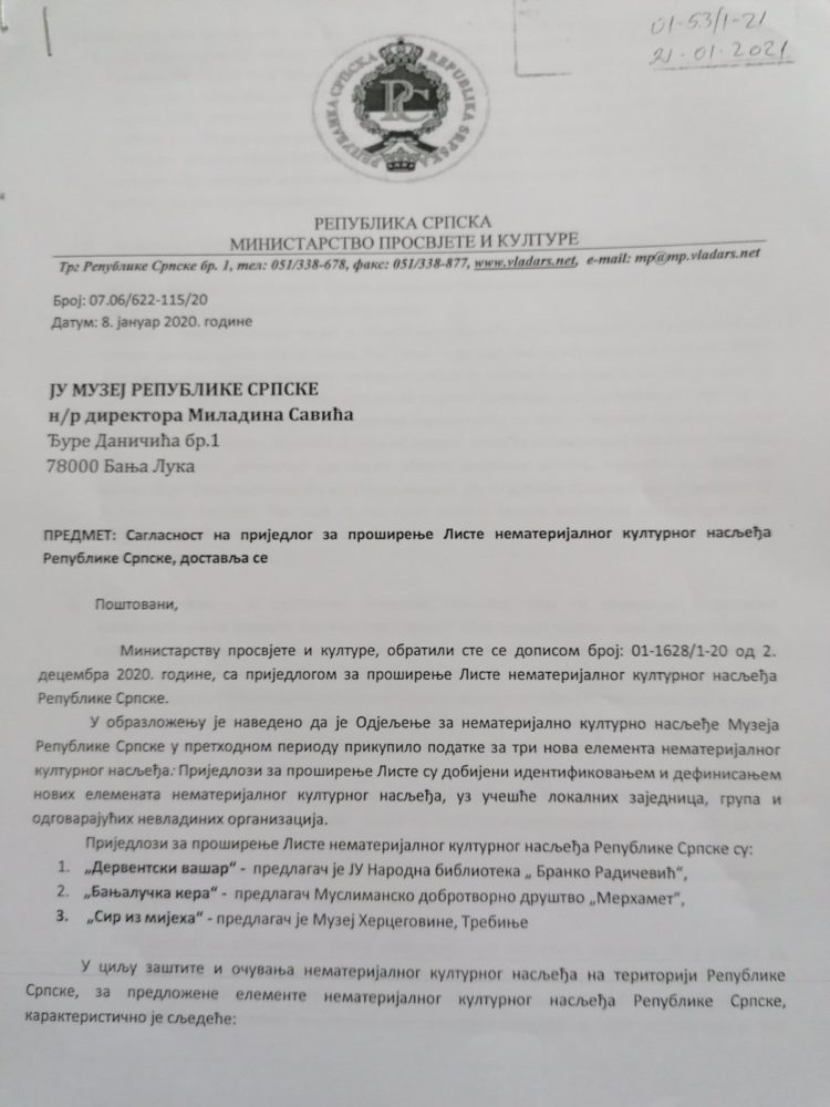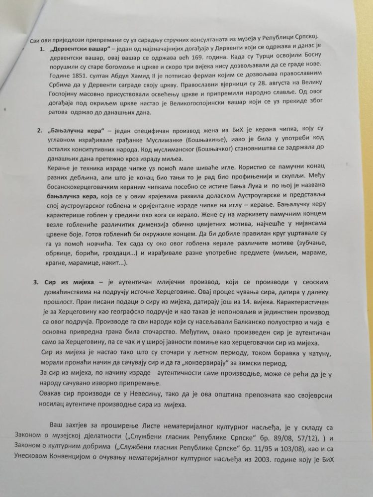 Pored Vašara, na listi su se našli i hercegovački sir iz mijeha i banjalučka kerana čipka.