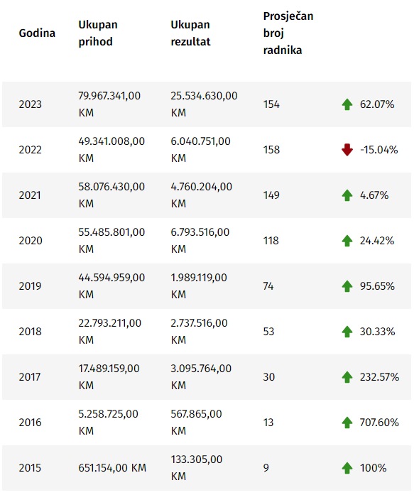 Takođe, njihov eksponencijalni rast je nastavljen, pa je prošla godine ostvaren rekordan prihod od skoro osamdeset miliona maraka, od čega je više od 25 miliona bila čista dobit.