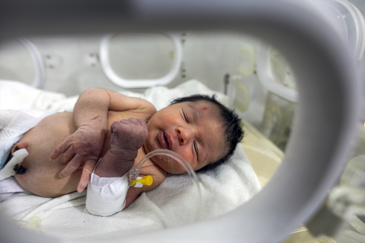 Djevojčica, koja je rođena pod ruševinama nalazi se u inkubatoru u dječijoj bolnici u Afrinu.