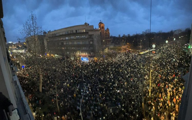 Više hiljada studenata i građana je u potpunoj petnaestominutnoj tišini odalo poštu za 15 poginulih u padu nadstrešnice rekonstruisane Željezničke stanice u Novom Sadu.