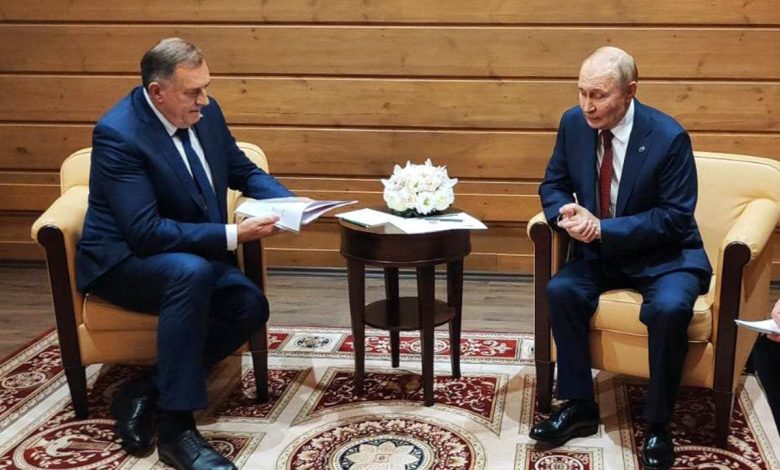 Milorad Dodik, predsjednik Republike Srpske, kojem je CIK BiH oduzela mandat zbog osuđujuće presude pred Sudom BiH, poručio je da je tokom sastanka sa Vladimirom Putinom, predsjednikom Ruske Federacija, zamolio ruskog lidera da Srpsku ne prepusti na milost i i nemilost briselskih birokrata.