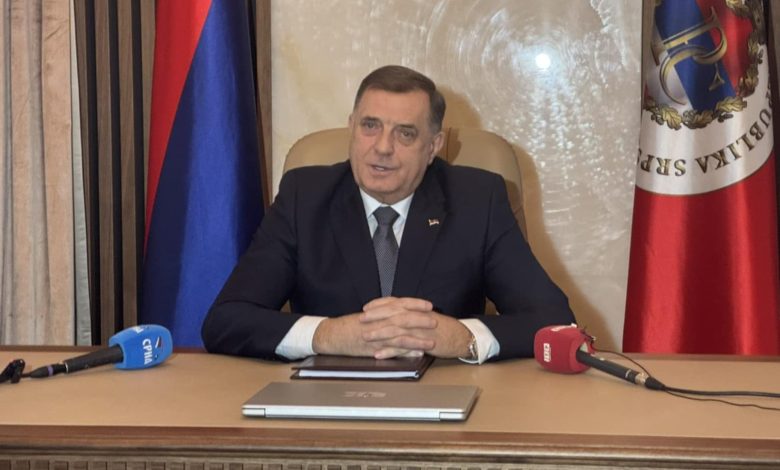 "Dozvolite mi da jasno ponovim, Republika Srpska i ja smo opredijeljeni za mirno i pregovaračko rješenje aktuelne krize koju je pokrenuo Šmit", poručio je Dodik.