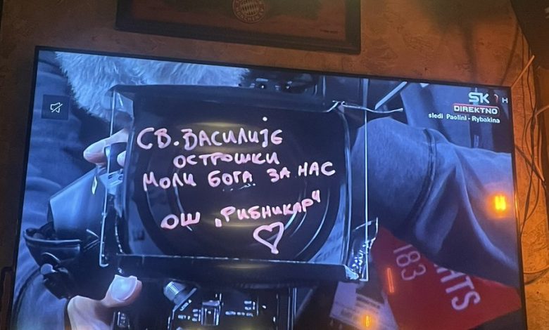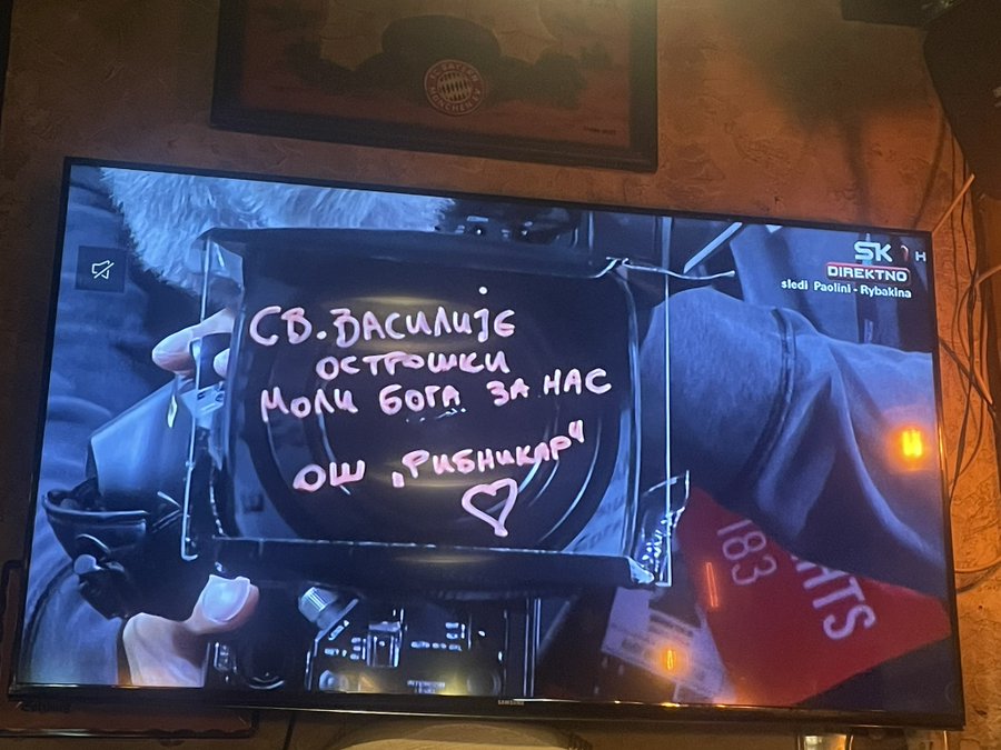 Po završetku meča, Srbin je poslao snažnu poruku: "Sveti Vasilije Ostroški, moli boga za nas. OŠ Ribnikar."