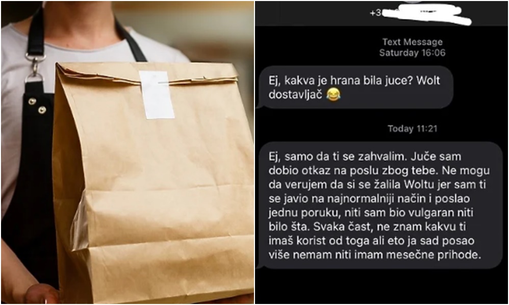 Naime, dan nakon što je poručena hrana bila predata na adresi naručioca, dostavljač je devojci poslao poruku – Ej, kakva je hrana bila juče? – potpisujući se kao „Wolt dostavljač“.