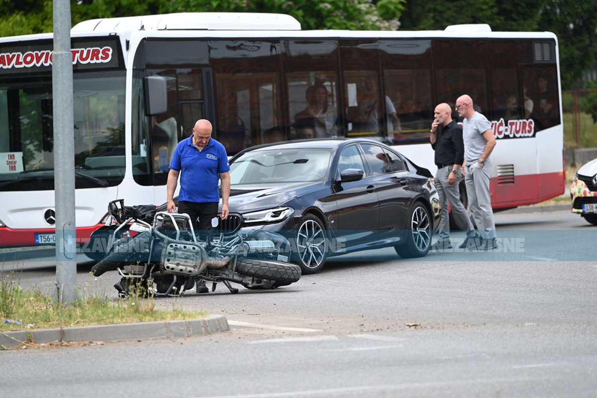 U kružnom toku kod Lesnine u Banjaluci došlo je do sudara motocikla i automobila.
