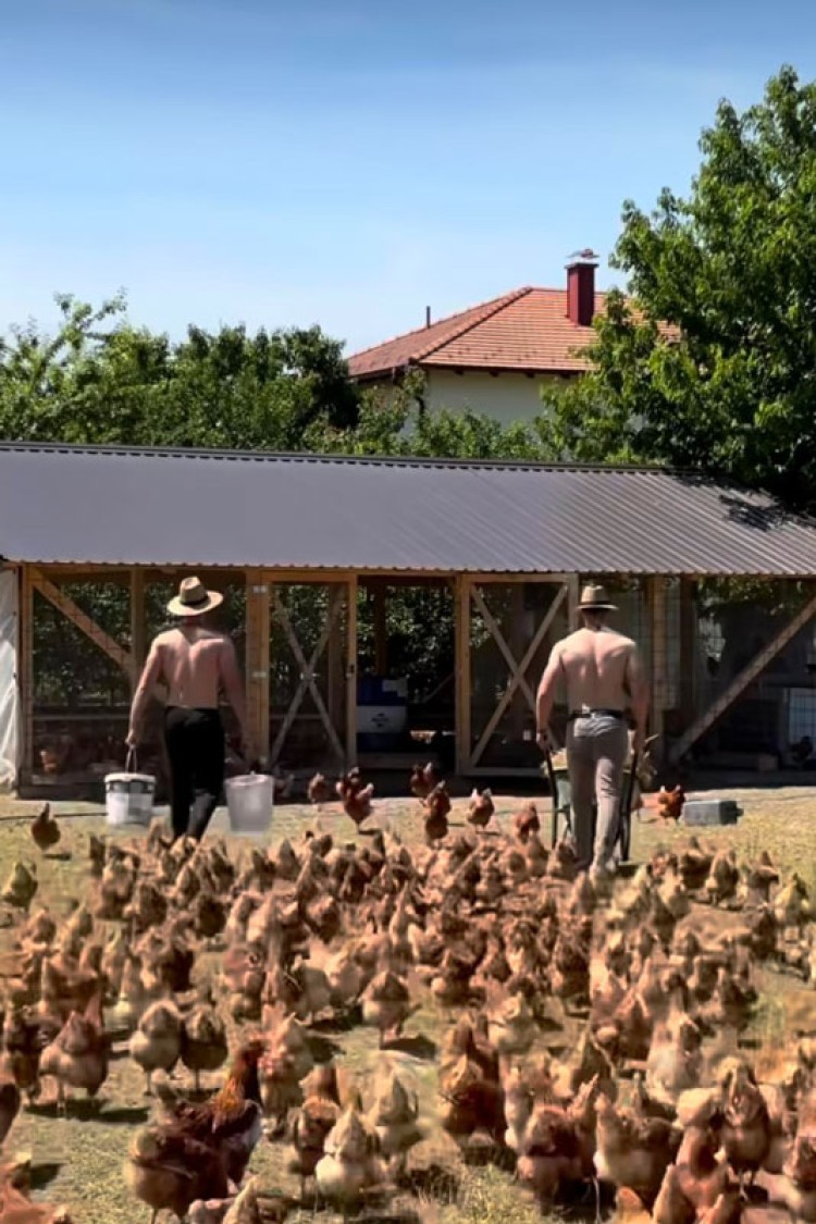 "Ostalo što nam je potrebno za hranu kupujemo od lokalaca, a naš dan počinje ujutro oko pet, šest. Puštamo koke na ispašu, hranimo ih, dopunjavano svježu vodu, čistimo kokošinjac, kupimo jaja i pakujemo ih u školjke i dostavljamo narudžbe koje su naručene za taj dan. Mi smo do 12 časova gotovi sa tom prvom turom, a onda se razdvajamo. Nemanja ide na teniski teren, gdje drži treninge, a ja idem u garažu da radim. Kasnije se opet sastajemo i ide druga tura hranjenja i uveče se obično sastanemo u teretani i tako skoro svaki dan", priča Zdravko.
