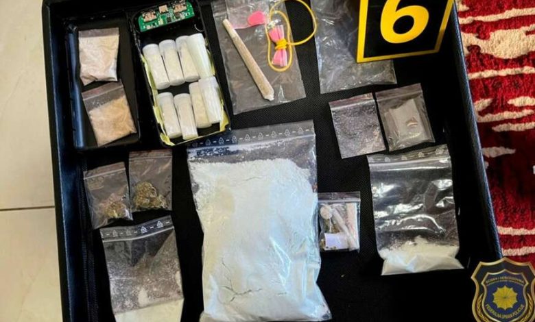 "Pronađeno je oko 300 grama materije, koja svojim izgledom asocira na opojnu drogu amfetamin, zatim oko 20 grama materije koja svojim izledom asocira na opojnu drogu kokain, određena količina materije koja svojim izgledom asocira na heroin, LSD i metamfetamin (Crystal meth), te pištolj i veća količina municije", navodi se u saopćenju FUP-a.