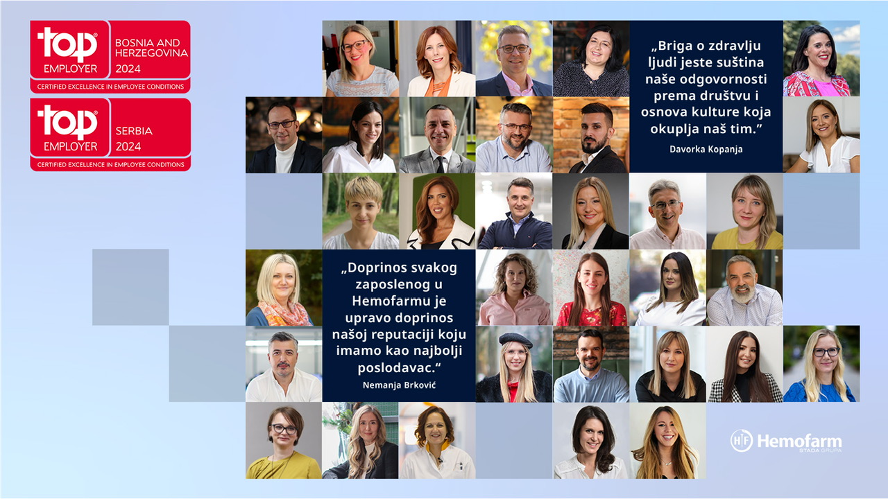 Treću godinu zaredom Hemofarm je dobitnik priznanja „Top Employer“ (Najbolji poslodavac) za 2024. u Bosni i Hercegovini i Srbiji od strane „Top Employers Institute“, nezavisne organizacije koja globalno ocjenjuje kompanije u pogledu njihove posvećenosti ljudskim resursima.