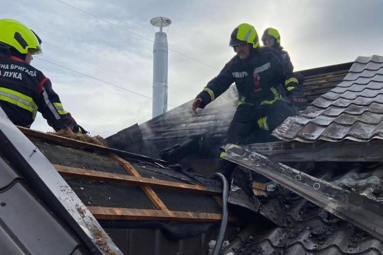 Vatrogasno-spasilačka brigada Banjaluka intervenisala je danas u zaseoku Gajići, u naselju Kola, gdje je izbio požar na krovu porodične kuće.