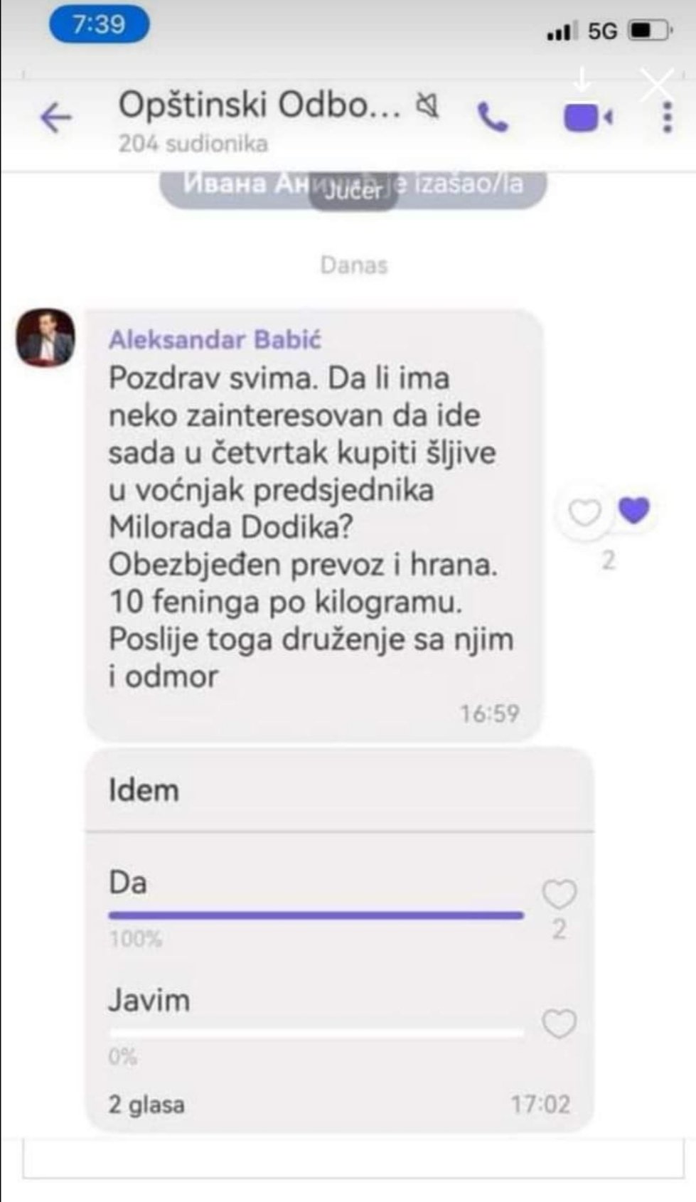 Poziv Aleksandra Babića, odbornika SNSD u Skupštini opštine Srbac, članovima Opštinskog odbora da danas dođu u “voćnjak predsjednika Milorada Dodika” kako bi kupili šljive izazvao je veliku pažnju u javnosti.