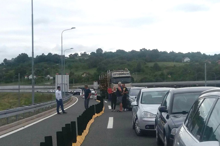 Duže od sat vremena je zaustavljen saobraćaj kod Mahovljanske petlje na auto-putu „9. januar“.