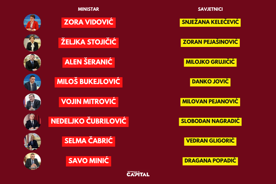 Za razliku od 12 ministarstava koja su portalu CAPITAL dostavila imena i prezimena savjetnika ministara u preostala četiri su odlučili da imena svojih savjetnika sakrijiu iz njima poznatih razloga.