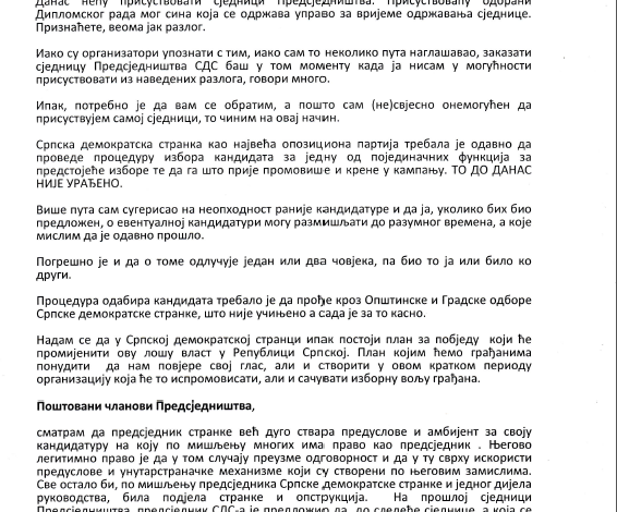 Poštovane kolege, članovi Predsjedništva Srpske demokratske stranke,