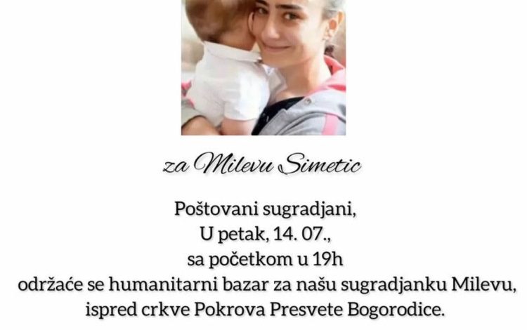 Jedan od organizatora Humanitarnog bazara Marina Đorđić izjavila je da je Mileva životno ugrožena, da joj doktori daju nekoliko mjeseci života i da nema vremena za čekanje.