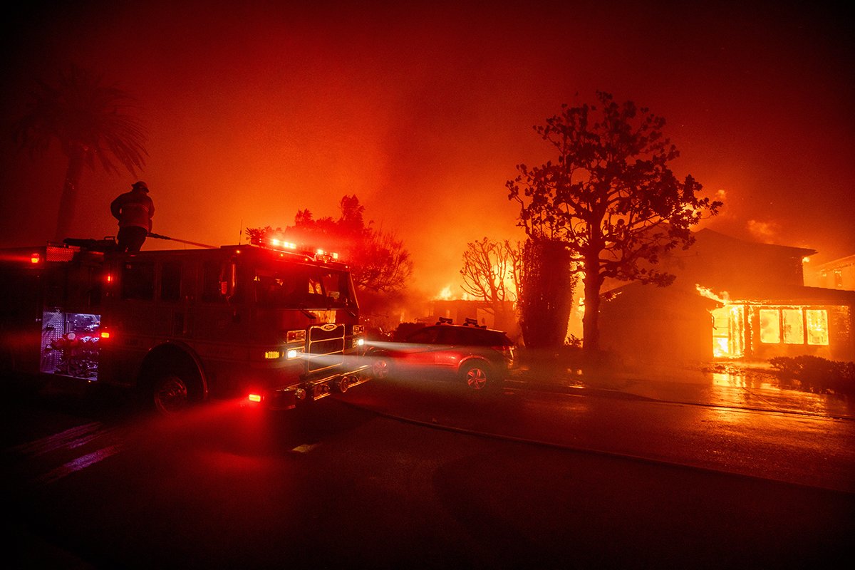 Pored stabala čaparala i eukaliptusa, gusto naseljeni urbani pejzaž Los Anđelesa takođe uključuje zapaljivi materijal sa visećim kablovima za napajanje, drvenim telefonskim stubovima i kućama izgrađenim od drveta u skladu sa pravilima za zemljotrese.