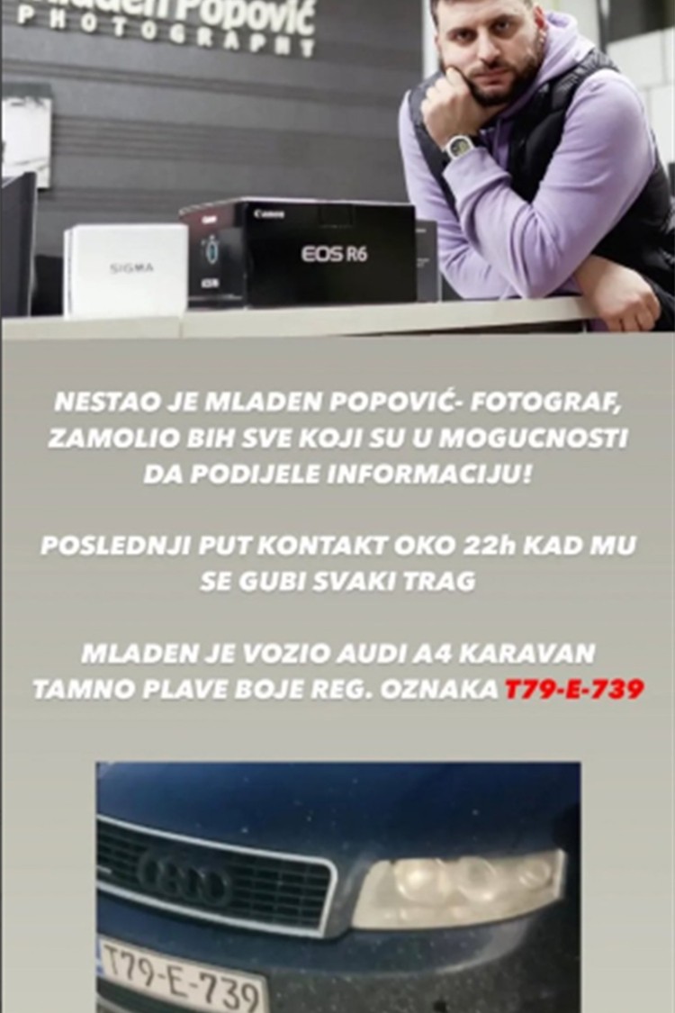 Kako je objavljeno na društvenima mrežama, Mladen je posljednji put viđen sinoć u 22 časa, kada mu se gubi svaki trag.