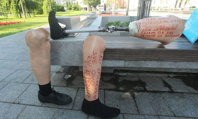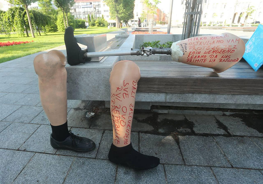 Nezadovoljni amputirci ispred Palate predsjednika sa zahtjevima čekaju Dodika