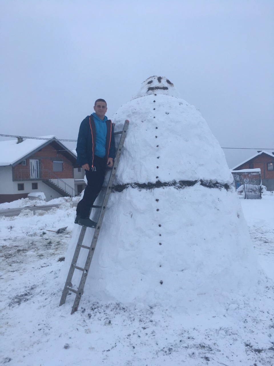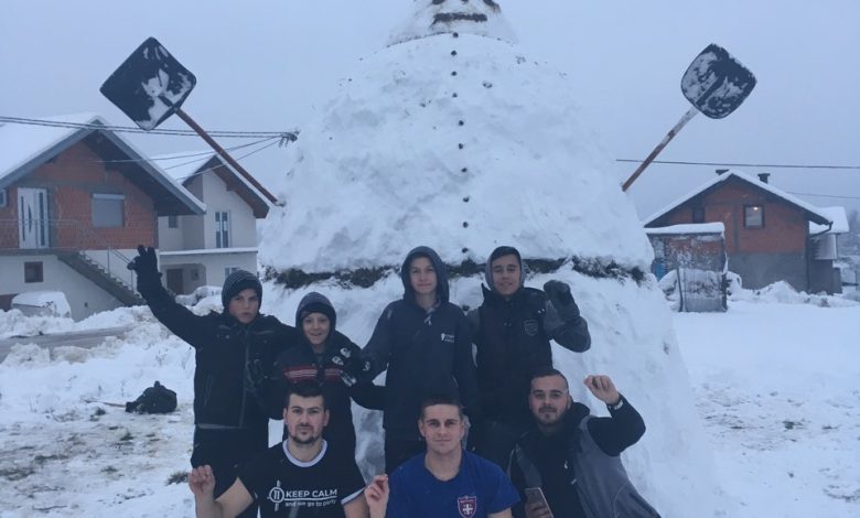 Ekipa iz Potočana je obilne snježne padavine koje su u protekla 24 časa zahvatile opštinu Prnjavor iskoristila kako bi napravili snješka visine 4 metra.