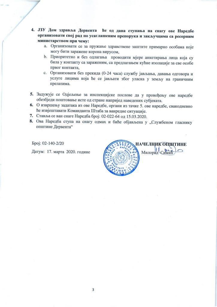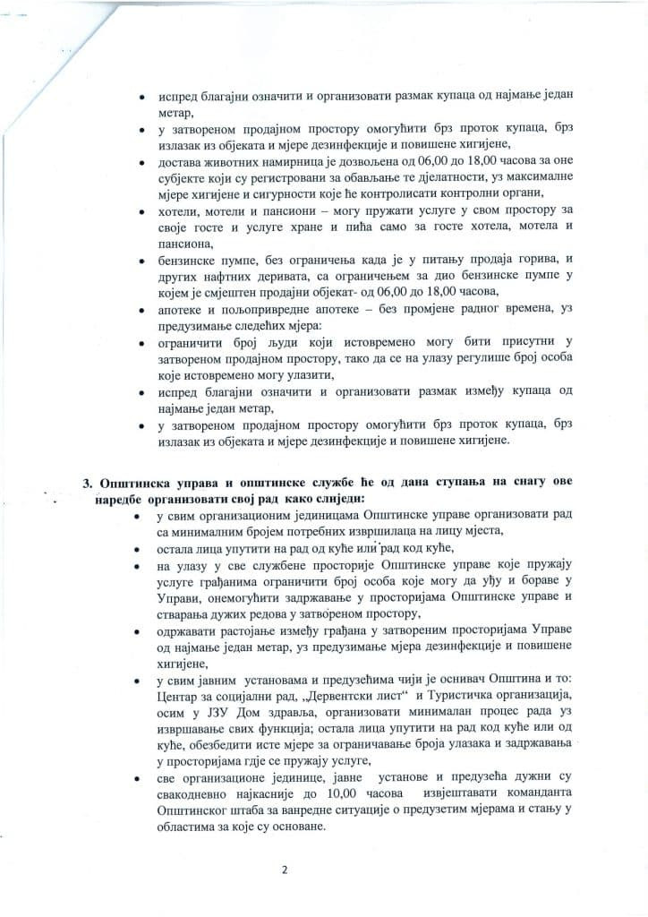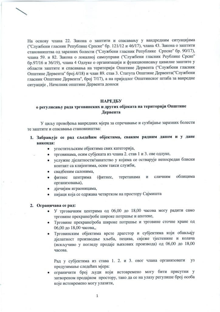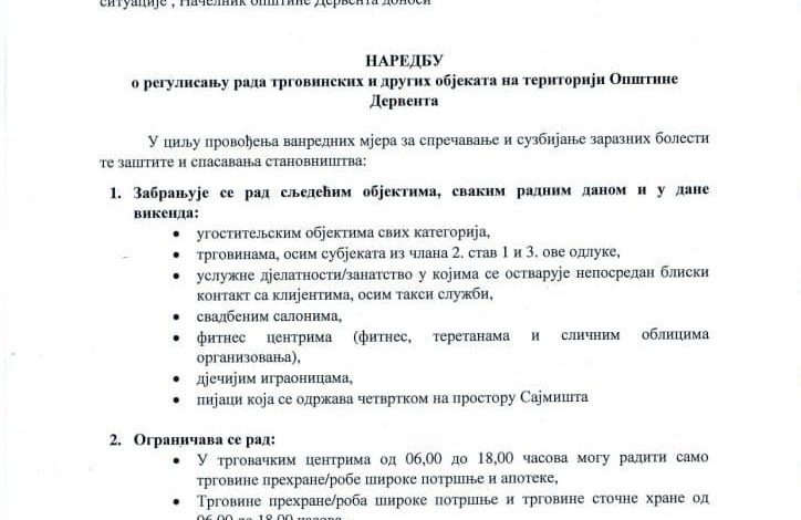 Derventa: Nova naredba o regulisanju rada trgovinskih i drugih objekata