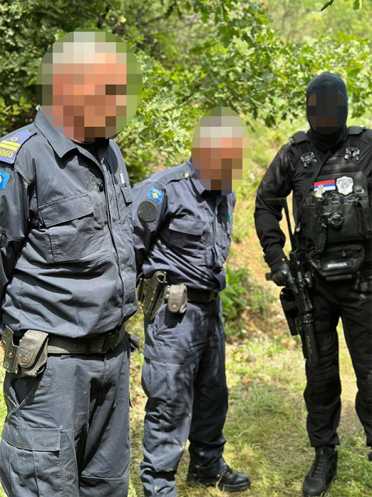Na administrativnom pojasu prema AP KiM, daleko u dubini teritorije centralne Srbije, pripadnici Ministarstva unutrašnjih poslova, Antiterorističke grupe posebne jedinice policije, danas je locirala i uhapsila tri pripadnika tzv. kosovske policije R. Z. B.S. i M.Š.