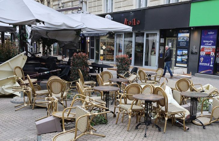 Na zagrebačkoj Kustošiji pala je skela sa visine drugog sprata na obje kolovozne trake, a u više ulica glavnog grada vjetar je obarao stabla. Nisu radili tramvaji jer je jedno stabilno oštetilo naponsku mrežu.