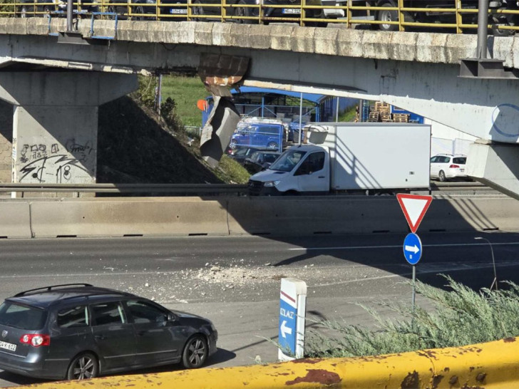 Sa nadvožnjaka na brzoj cesti Banjaluka – Laktaši u mjestu Trn otpadaju komadi betona na automobile koji prolaze ispod njega.