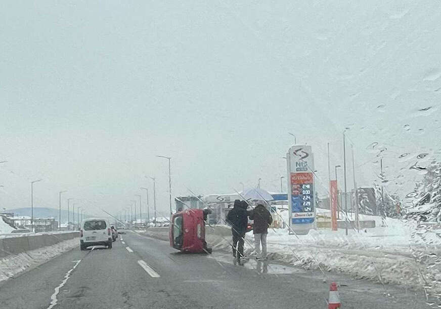 Na brzoj cesti Banjaluka – Laktaši auto se okrenulo na bok.