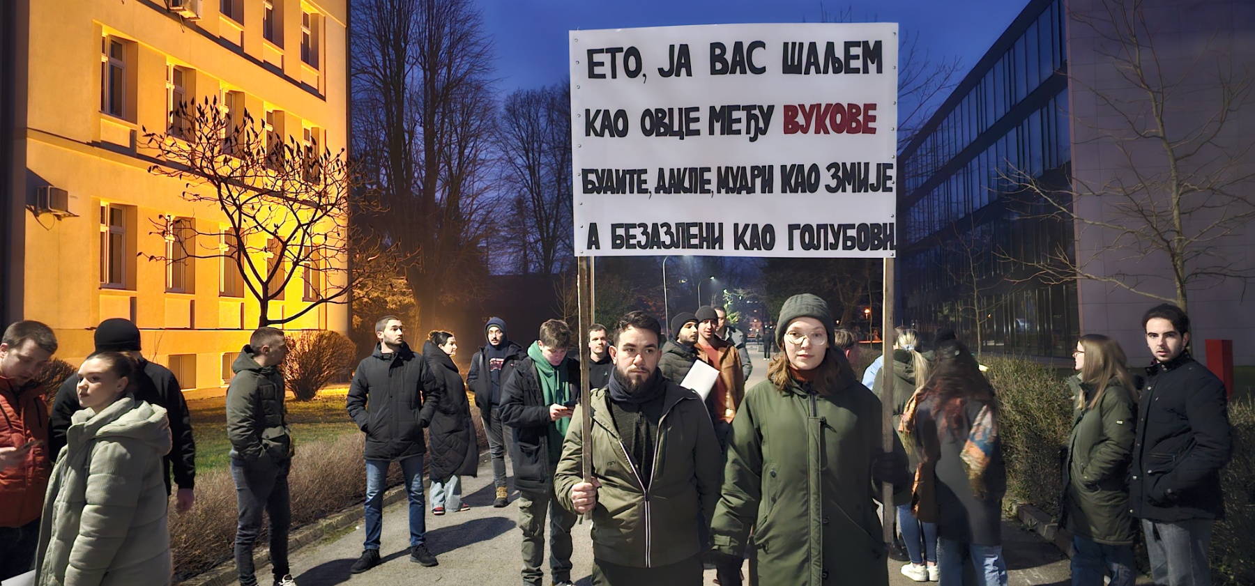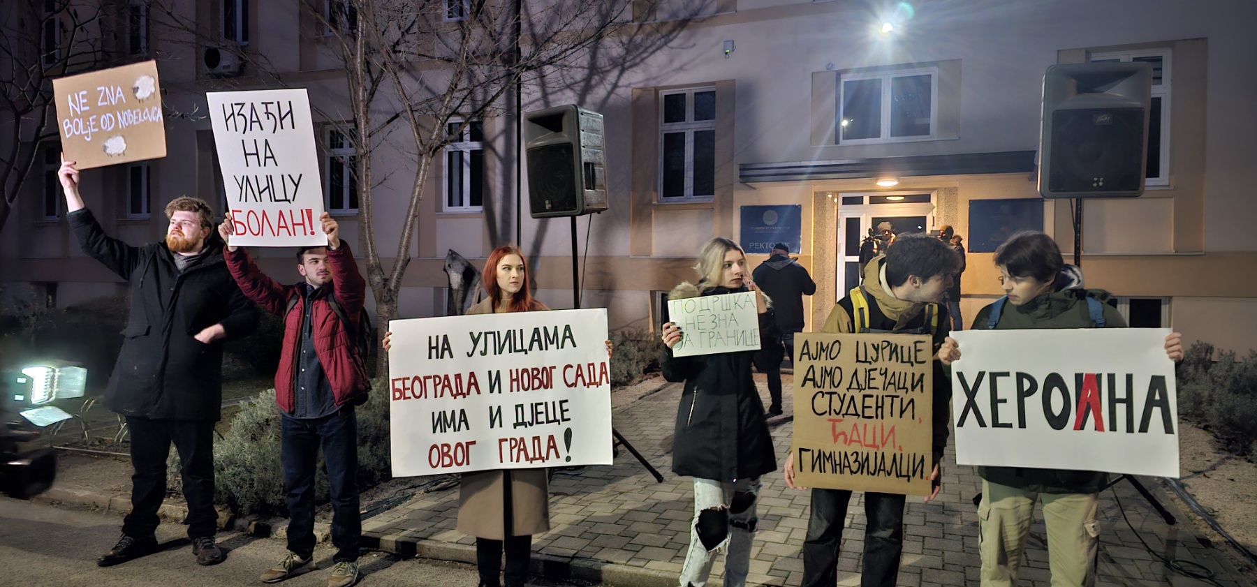 Više stotina banjalučkih studenata i građana šalju jasne poruke sa večerašnjeg okupljanja u glavnoj aleji kampusa banjalučkog Univerziteta gdje su došli da pruže podršku kolegama u Srbiji.