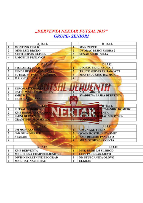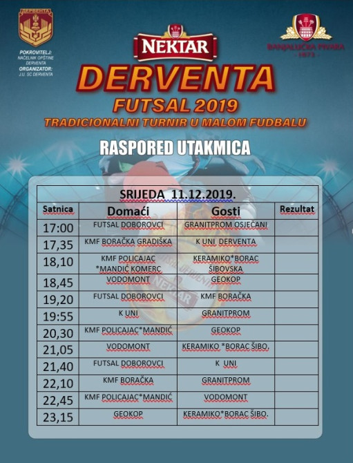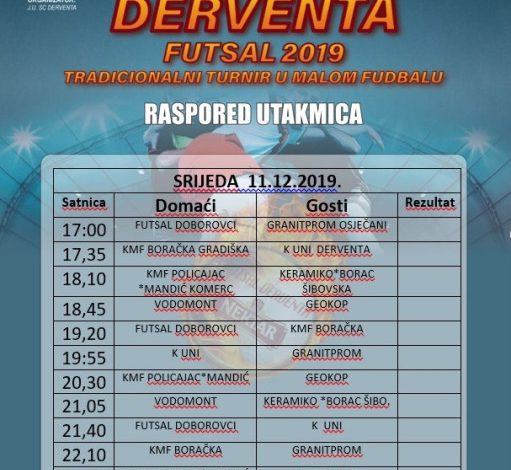Utakmicama u grupama H i G počinje „Derventa futsal 2019“ koji se i ove godine igra od 11. do 29. Decembra.