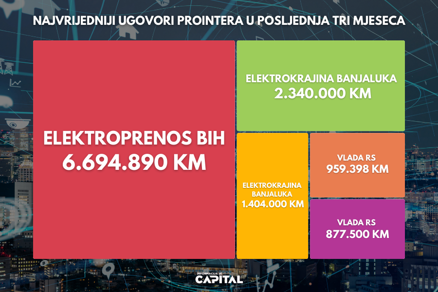 Banjolučka kompanija „Prointer“ u protekla tri mjeseca dobila je od institucija i javnih preduzeća ugovore vrijedne čak 18,5 miliona maraka pobjeđujući na tenderima samostalno ili kao član grupe ponuđača, pokazala je analiza portala CAPITAL.