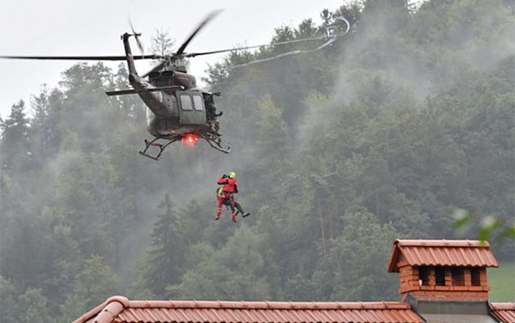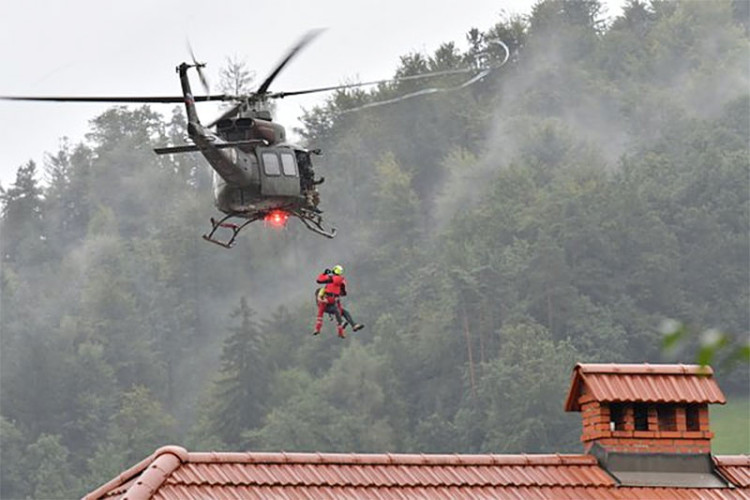 Ljude iz poplavljenih područja Vojska Slovenije izvlači helikopterima.