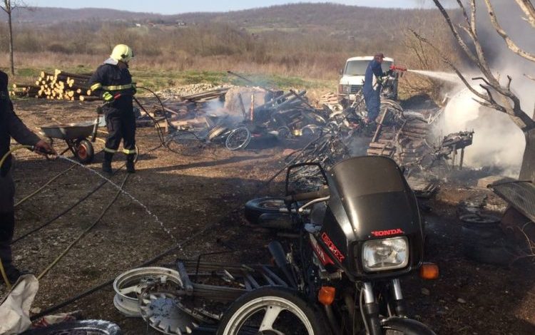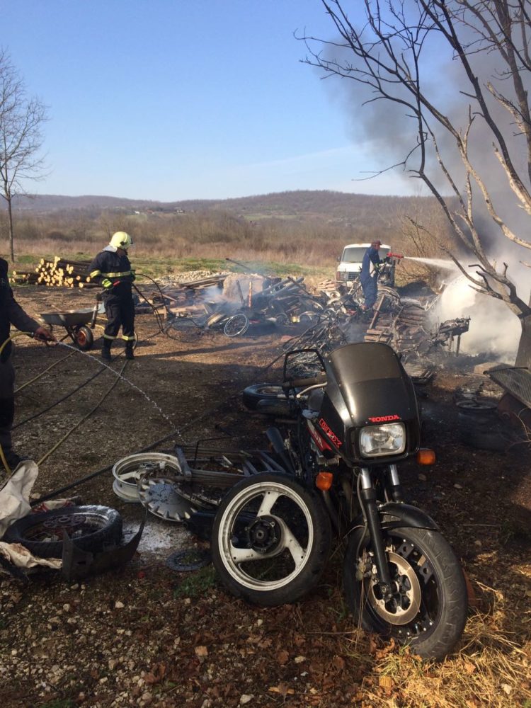 Požar izazvan paljenjem na otvorenom zahvatio rezervoar za plin i motocikle