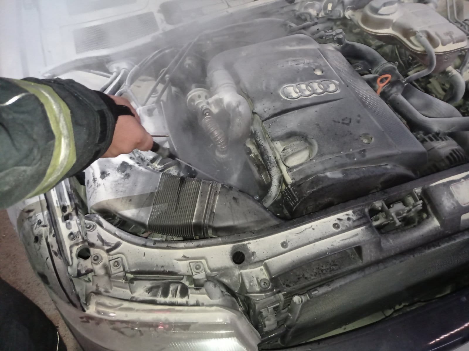 Prema prvim informacijama, vjerovatno je došlo do samozapaljenja vozila, pošto se vatra pojavila na motoru automobila.