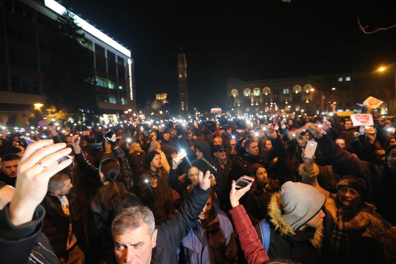17:56 Na Trg Krajine stigli su i pripadnici specijalne policije. Preko razglasa pozivaju građane da se mirno raziđu. Građani kreću prema Metalskoj školi, prenosi Mondo.