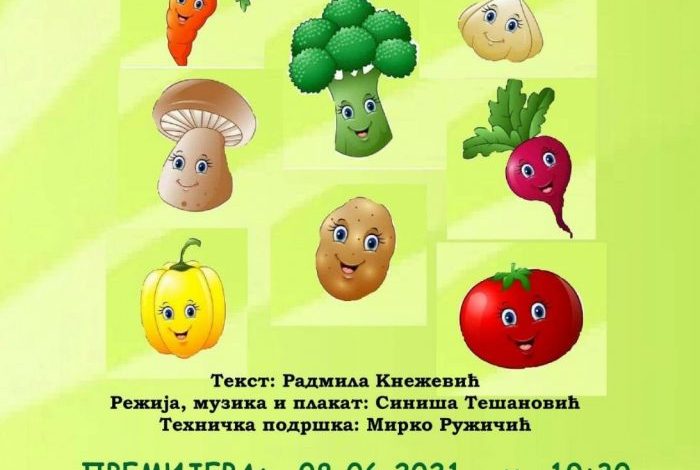 Najmlađi polaznici škole glume, koja se održava pod okriljem Narodne biblioteke „Branko Radičević“, u utorak, 8. juna, premijerno će pred sugrađanima izvesti komad pod nazivom „Veselo povrće“.