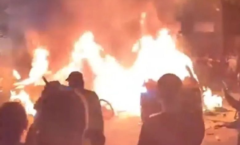 Podmetnuti su požari na više mjesta na ulicama, ogromna vatra je gorjela.