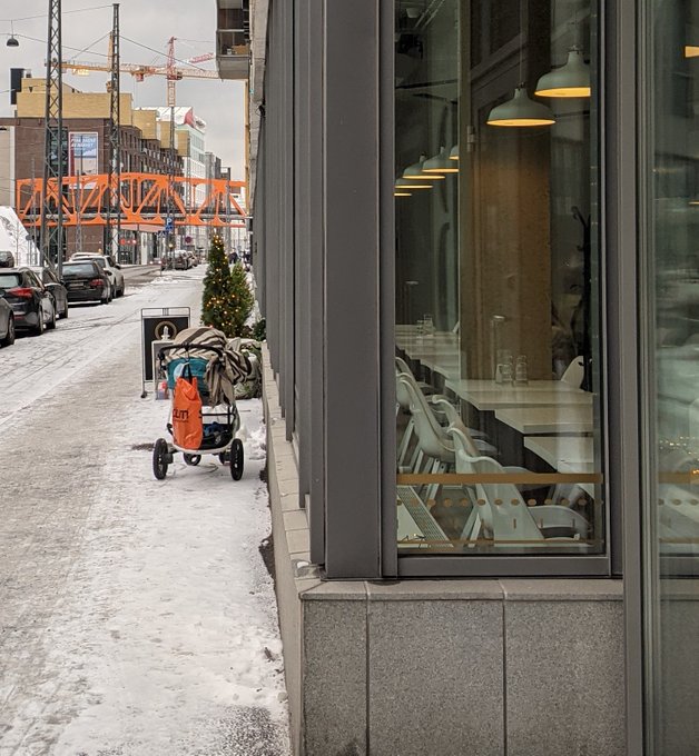 “Klasična situacija u Finskoj. Dok ruča u restoranu, majka je bebu ostavila napolju da dremne na svježem vazduhu. Ona sjedi s druge strane stakla”, opis je fotografije na kojoj se vide dečija kolica ispred restorana.