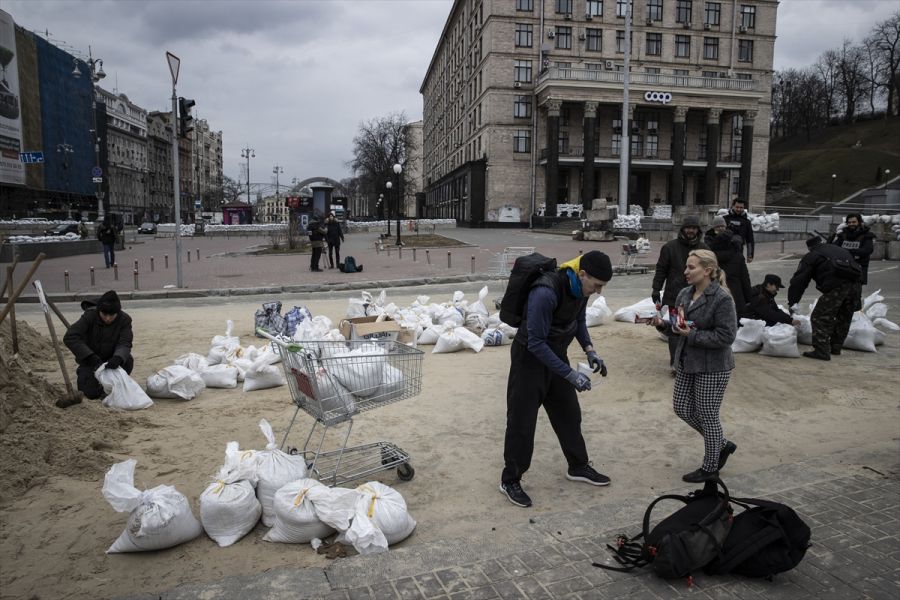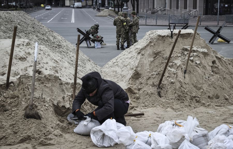 Barikade napravljene od vreća s pijeskom nastavljaju se podizati u važnim područjima Kijeva.