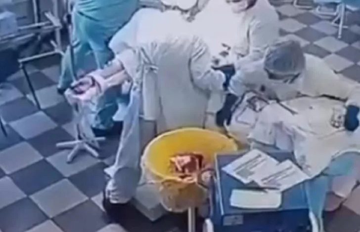 Na dramatičnom snimku se vidi kako ljekari prvo gledaju šta se događa, a potom se, kao da su se dogovorili, naginju iznad uspavanog pacijenta, kako bi spriječili da ga nešto povrijedi ili da komadi plafona upadnu u otvorenu ranu.