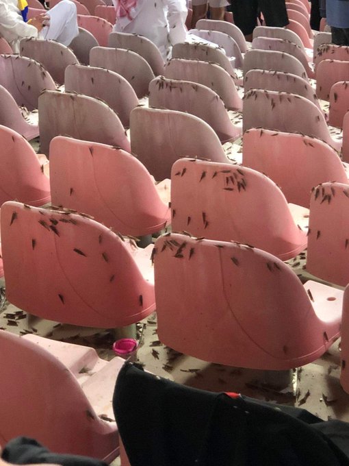 Gledaoci koji su ispunili tribine Gradskog sportskog stadiona Kralja Abdulaziza, svjedočili su jedinstvenom događaju, pravoj najezdi skakavaca.