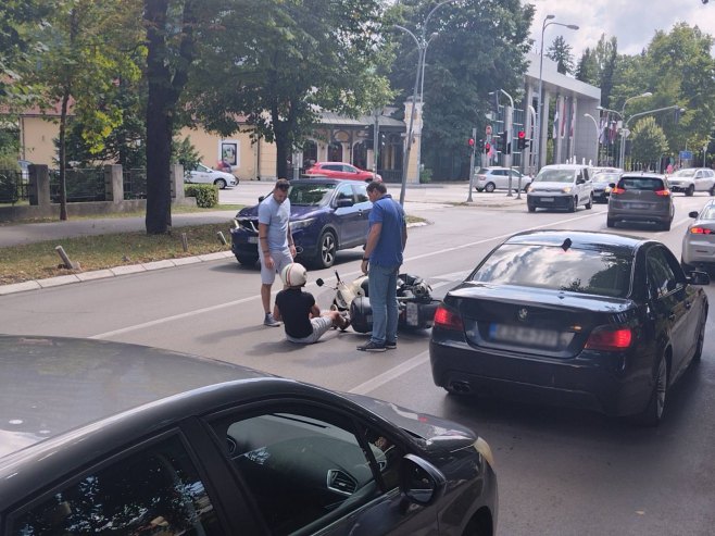 Na raskrsnici kod zgrade Vlade Republike Srpske u Banjaluci, došlo je do saobraćajne nezgode u kojoj je učestvovao motocikl i automobil.