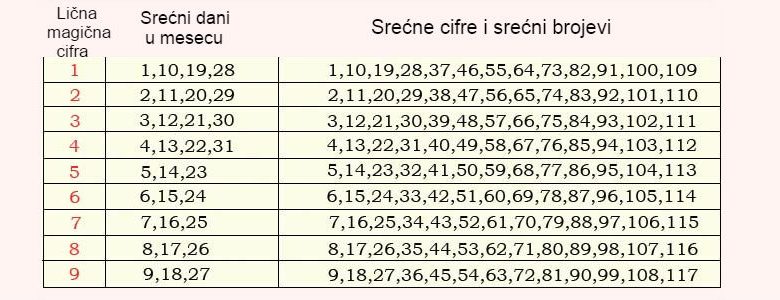 Numerologija pruža mogućnost da pomoću „lične magične cifre“ saznamo svoje srećne dane u svakom mjesecu, godine, i srećne brojeve, uopšte.